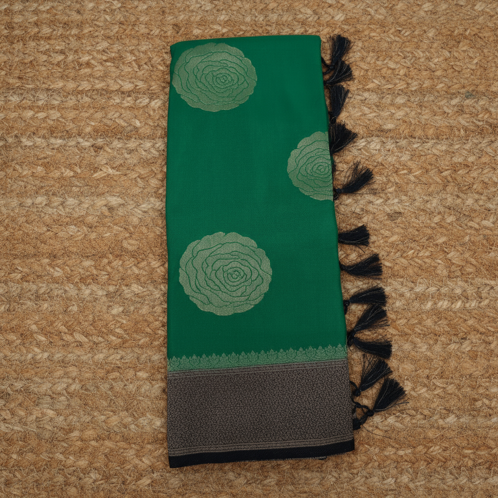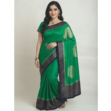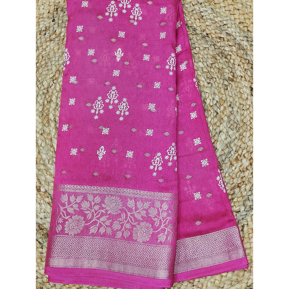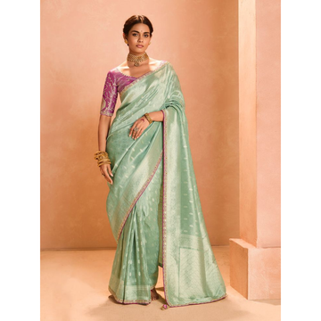 Pista geeen with Magentha border pearl viscose saree with floral motifs