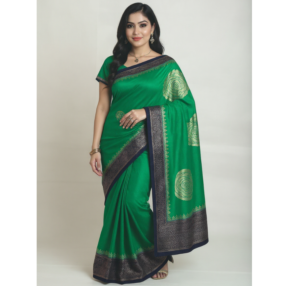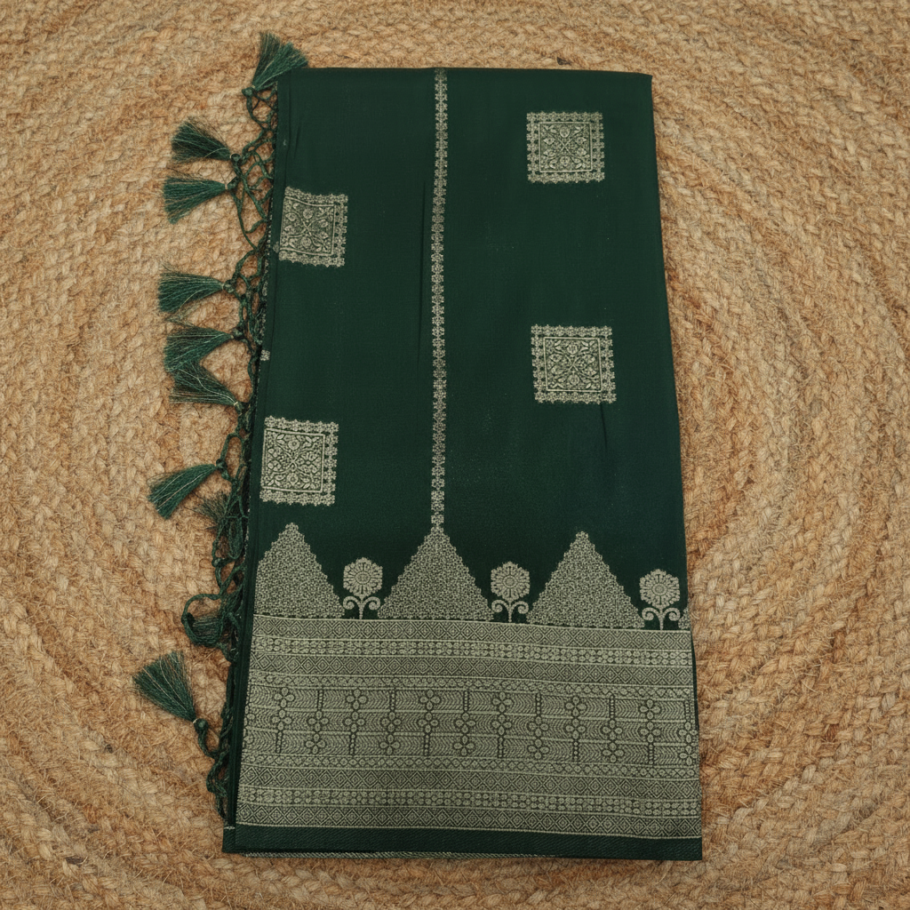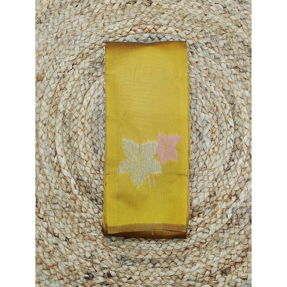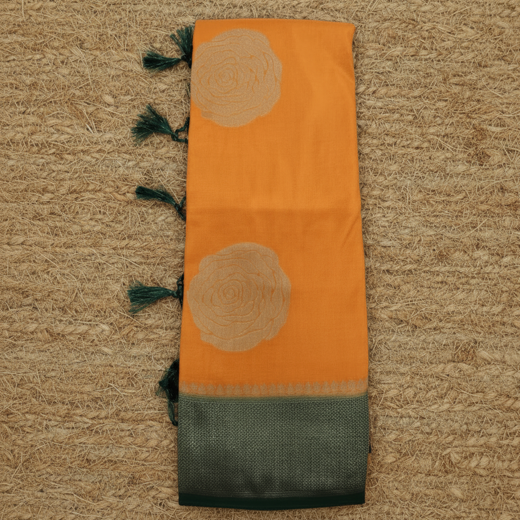Mustard Yellow with Dark Green border pearl viscose sarees with floral motifs