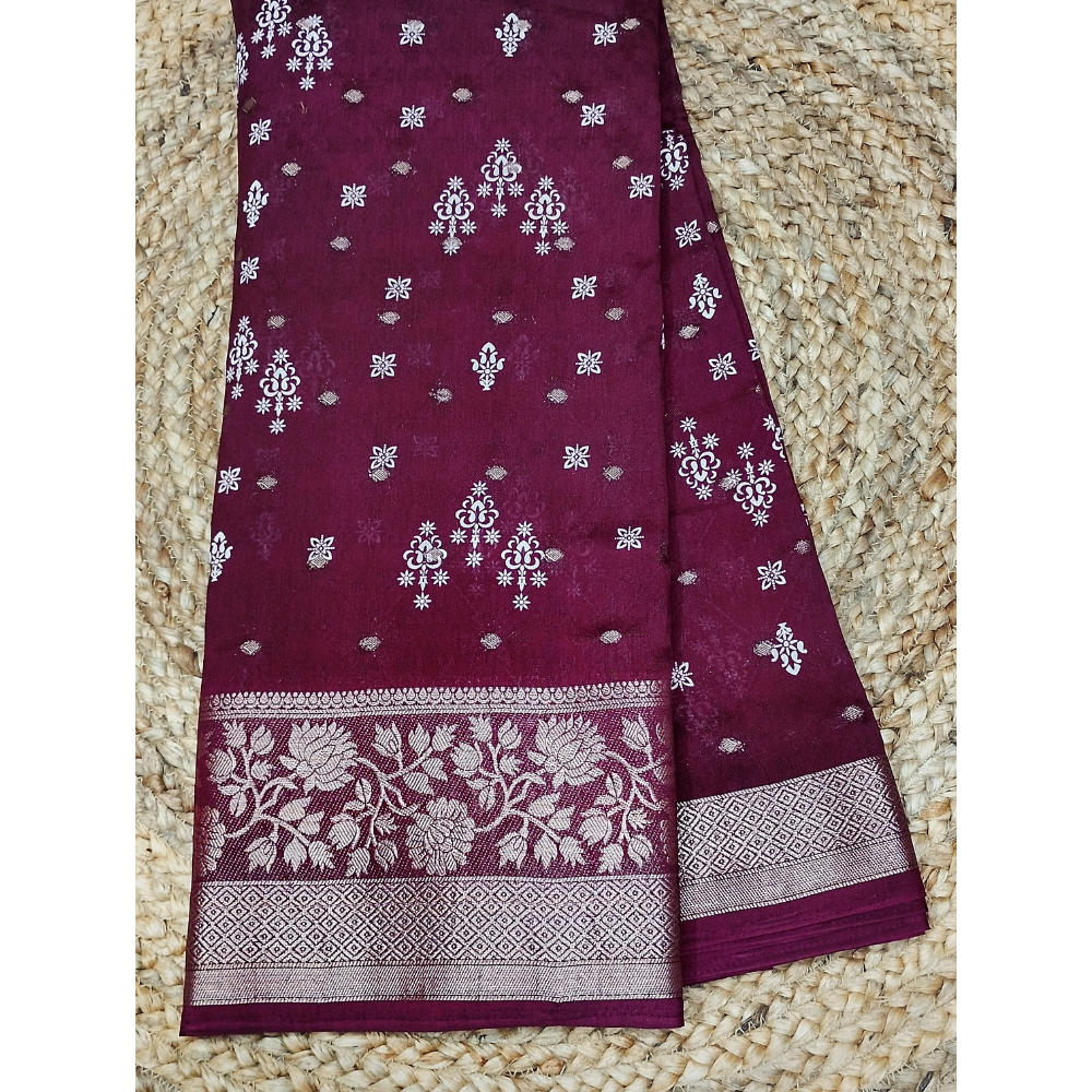 Dark Maroon Georgette Saree with Zari Bhuttas