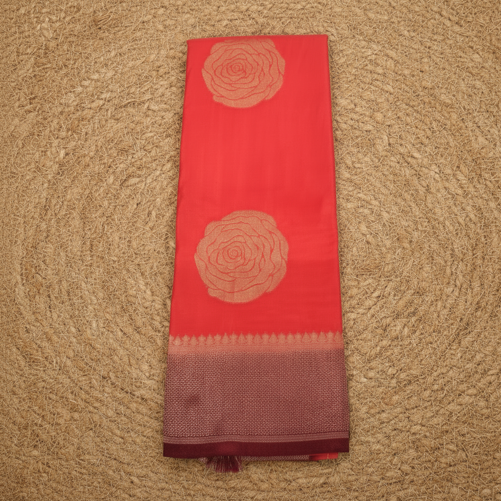 Bright Orange with Maroon border pearl viscose sarees with floral motifs