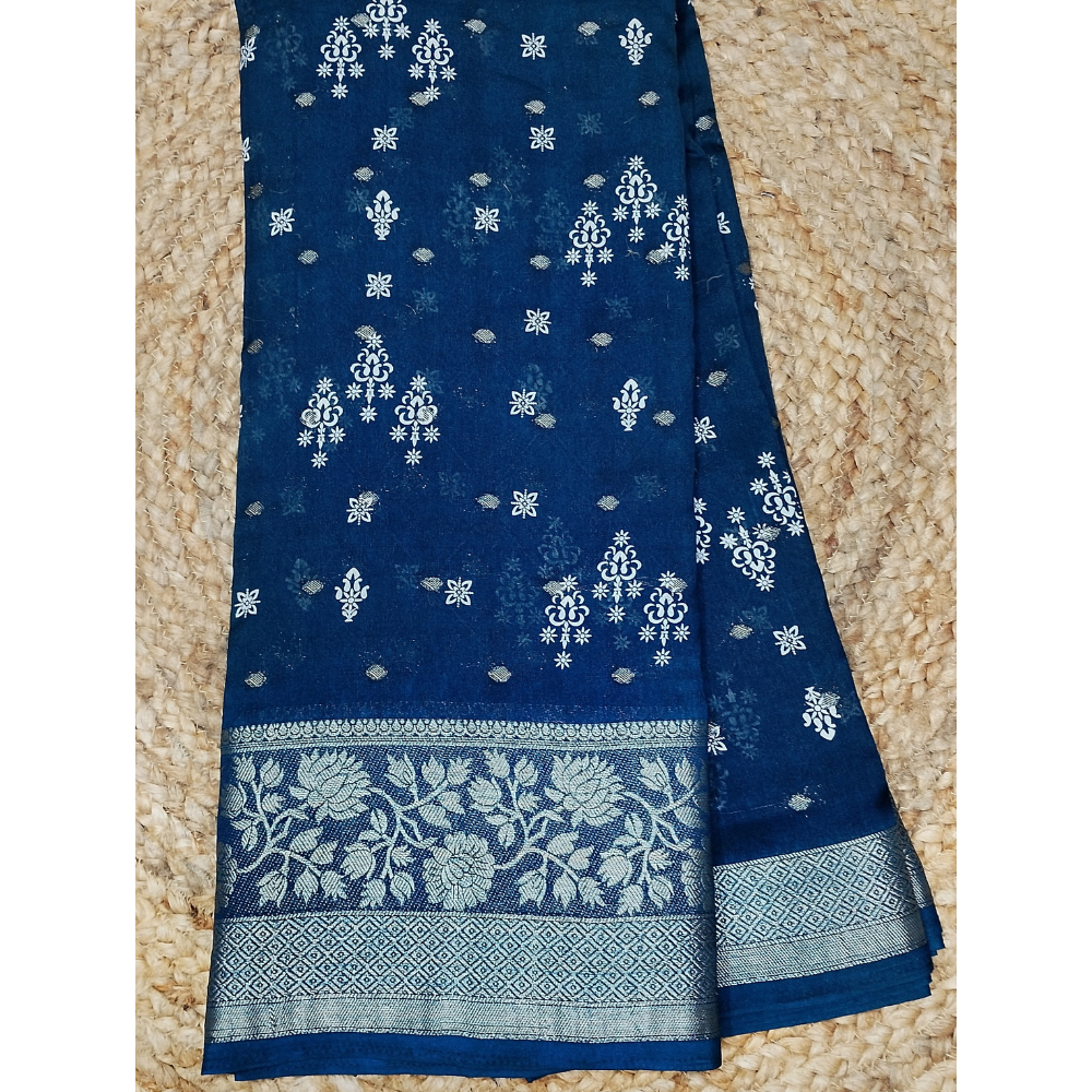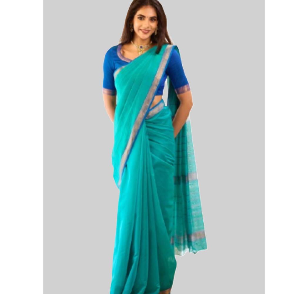 Blue colour with Violet blouse n pallu Semi Soft Saree