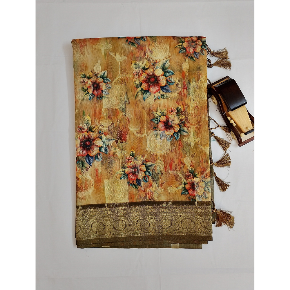 Light Golden Brown Colour Zari Woven Chanderi Sarees