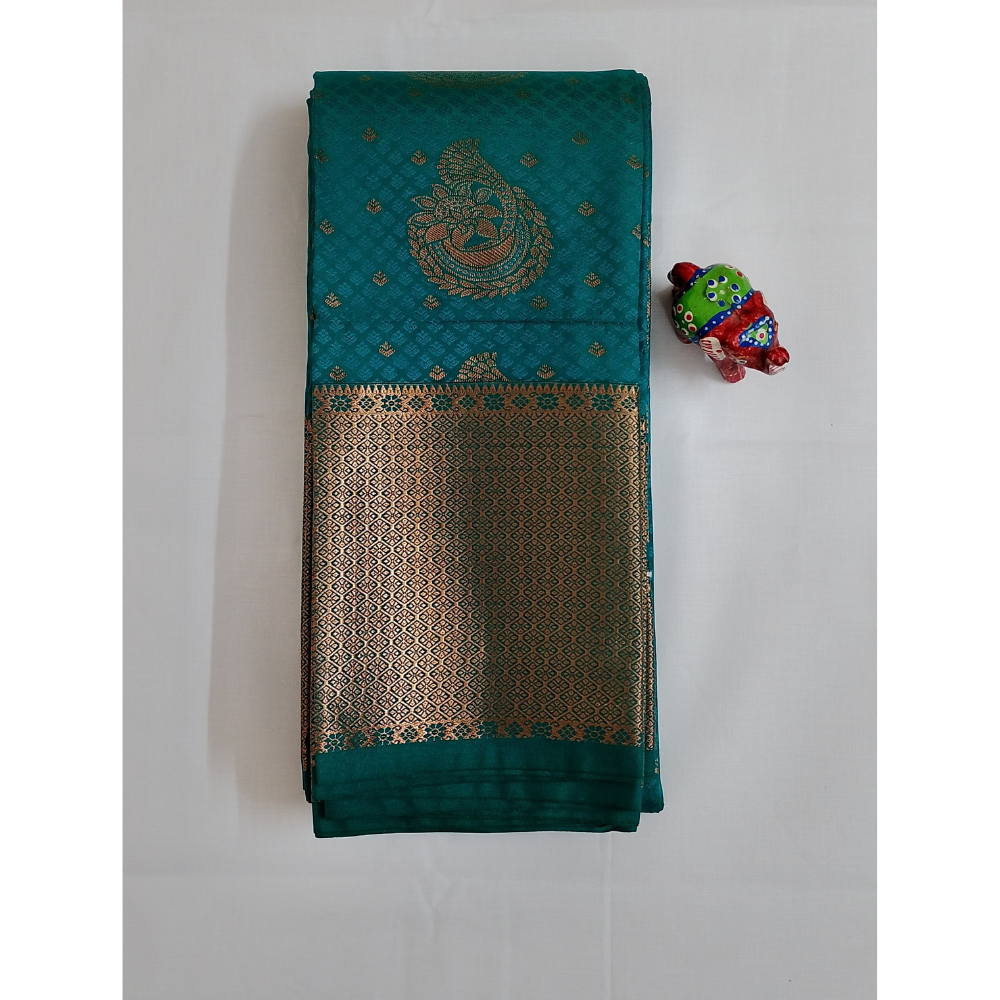 Peacock Green n Blue Colour combination Semi Art Silk Saree