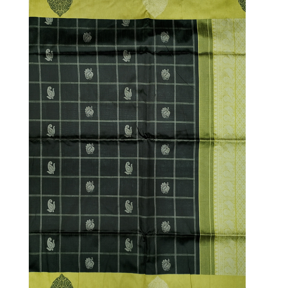 | Design | All-over checked patterns peacock n mango motifs |